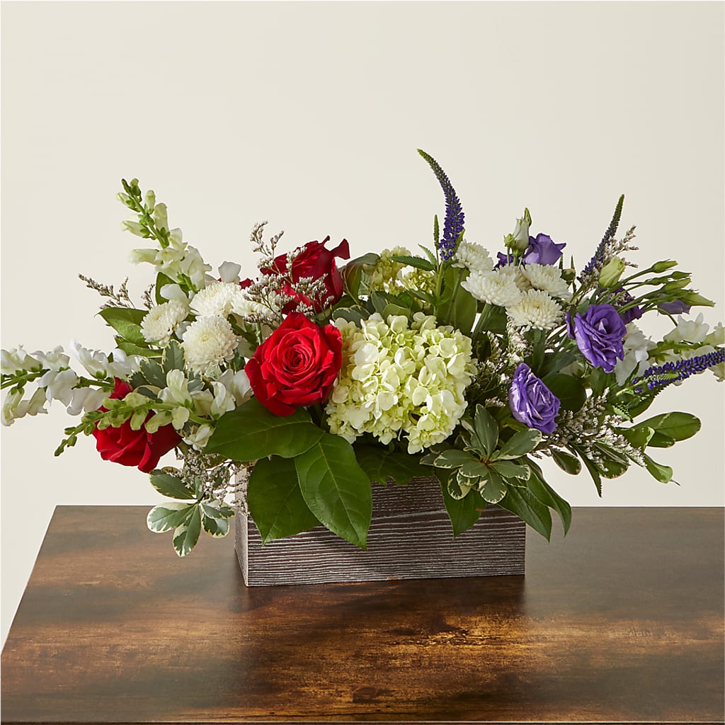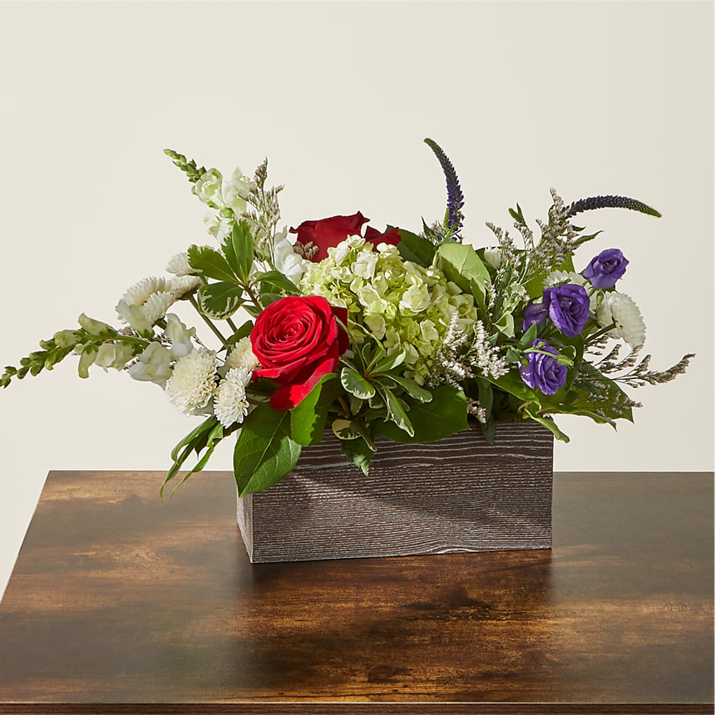 - Designed by florists in a brown wooden box, ready to display.